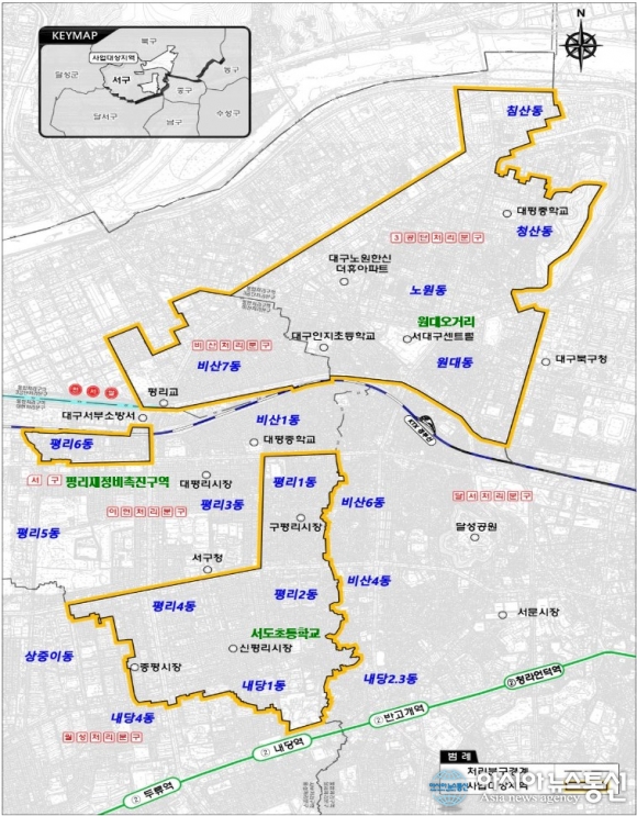 달서천 5구역 위치도.(자료제공=대구시청) [아시아뉴스통신=윤석원 기자] 대구광역시가 하수로 인한 침수와 악취 등으로부터 시민의 안전과 건강을 보호하고, 공공수역의 수질을 보전하기 위해 추진 중인 '달서천 5구역 하수관로 정비 임대형 민간투자사업(BTL)'이 본격적인 탄력을 받게 됐다. 대구시는 지난 17일, 기획예산처 주관 '2026년도 제3차 민간투자사업심의위원회'에서 해당 사업이 최종 통과됐다고 밝혔다. 이번 심의를 통해 민간투자사업대상 지정 및 제3자 제안공고(안)이 확정됨에 따라 사업 추진을 위한 행정적 기반이 모두 마련됐다. 이번 달서천 5구역 하수관로정비사업 북구 원대오거리 일원(5-1구역), 서구 서도초등학교 일원(5-2구역), 서구 평리재정비촉진구역 북편(5-3구역) 지역을 대상으로 한 우·오수 분류화 사업으로, 총사업비는 2690억원 규모다. 본 사업은 민간 자본을 유치해 사업시행자(SPC)가 사업비를 선투자해 사회기반시설을 건설하면, 대구시가 소유권을 넘겨받아 임대료를 지불하는 임대형 민간투자사업(BTL) 방식으로 추진된다. 이 방식을 통해 시는 초기 재정 부담을 최소화하면서도 넓은 지역에 신설 오수관로를 신속하게 설치할 수 있을 것으로 기대하고 있다. 앞서 대구시는 2023년 최초 사업제안서를 접수한 이후 한국개발연구원 공공투자관리센터의 민자적격성 검토에서 '적격' 판정을 받았으며, 2025년 12월에는 국회의 한도액 승인을 획득하는 등 체계적인 사전 절차를 밟아왔다. 시는 이번 심의 통과를 기점으로 행정절차에 속도를 낼 방침이다. 올해 하반기 중 우선협상대상자를 지정하고, 2027년까지 실시협약 체결 및 사업시행자 지정을 완료할 계획이다. 이후 실시계획 승인 등을 거쳐 2028년 하반기 착공해 2032년까지 사업을 마무리할 예정이다. 이번 5구역 사업과 더불어 1구역과 2~4구역까지 2032년 내에 우·오수 분류화가 완료되면, 중구·서구·남구·달서구 일대의 주거환경이 획기적으로 개선될 전망이다. 장기적으로는 달서천의 생태적 건강성을 회복해 시민들이 즐겨 찾는 친수공간으로 거듭나는 데 크게 기여할 것으로 보인다. 김정섭 대구시 환경수자원국장은 "향후 민간사업자 공모와 실시협약서 체결 등 행정절차를 차질 없이 추진해 지역경제 활성화의 마중물로 삼겠다"며 "2032년까지 사업을 완료해 방류수역의 수질개선과 악취 예방으로 시민들에게 보다 쾌적한 주거환경을 제공하겠다"고 말했다. seok193@daum.net