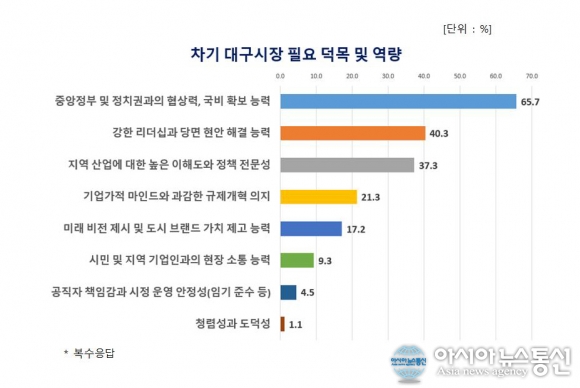 대구 기업 "차기 시장 필수 역량 1순위는 '국비 확보 및 중앙정부ㆍ정치권 협상력'"
