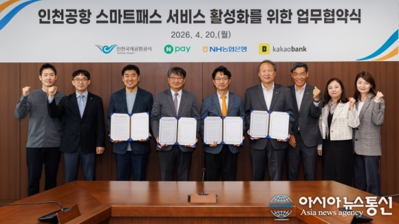 20일 오후 인천국제공항공사 청사 회의실에서 진행된 ‘인천공항 스마트패스 서비스 활성화를 위한 업무협약식’에서 공사 및 금융3사 관계자들이 업무협약을 체결한 후 기념 촬영을 하고 있다. (왼쪽부터 카카오뱅크 배정호 고객인증서비스팀장, 공사 정지화 스마트서비스팀장, 네이버파이낸셜 이향철 페이서비스이사, 공사 김창규 운영본부장, 카카오뱅크 이형주 AI그룹장, 농협은행 정태영 정보보호부문장, 농협은행 나문선 디지털인증센터장, 농협은행 양경미 모바일ID운영팀장, 카카오뱅크 심지희 신사업팀 리더)./사진제공=인천공항공사 [아시아뉴스통신=조은애 기자] 인천국제공항공사는 인천공항의 안면인식 출국 서비스인 ‘스마트패스’의 등록 채널을 확대하기 위해 네이버페이, NH농협은행, 카카오뱅크와 ‘스마트패스 서비스 활성화 업무협약’을 체결했다고 21일 밝혔다. 스마트패스는 2023년 7월 국내 공항 최초로 도입된 안면인식 출국 서비스로, 이용객은 여권이나 탑승권을 별도로 제시할 필요 없이 얼굴 인식만으로 출국장과 탑승구를 통과할 수 있어 출국 대기시간을 단축할 수 있다. 공사는 스마트패스 서비스를 활성화하기 위해, 기존 공식 채널인 전용 모바일 앱(ICN Smartpass)과 공항 내 셀프체크인 키오스크에 더하여, 금융 앱에서도 스마트패스를 사전 등록할 수 있도록 서비스 연계를 지속적으로 확대해 왔다. 앞서 5개 금융사(KB국민, 신한은행, 하나은행, 우리은행, 토스)와 업무협약을 통해 연계 서비스를 제공 중이며, 이번 협약으로 3개 금융사의 생활밀착형 금융 플랫폼(네이버페이, NH올원뱅크, 카카오뱅크) 모바일 앱에서도 스마트패스 서비스를 이용할 수 있게 된다. 이 외에도, 공사는 항공사 등 관련 시스템과의 연계를 확대하고 스마트패스 전용 보안검색 장비를 늘리는 등 서비스 이용 환경을 지속적으로 개선해 나가고 있다. 이러한 서비스 활성화 노력으로, 인천공항 스마트패스 이용률은 도입 첫해인 2023년 4.4%에서 올해 3월 말 기준 14.8%로 빠르게 증가하였다. 스마트패스 서비스 등록자는 누적 약 799만 명, 이용 횟수는 누적 약 837만 회를 기록하며 안정적으로 운영되고 있다. 인천국제공항공사 김창규 운영본부장은 “이번 협약을 통해 스마트패스 서비스의 이용 편의성과 접근성이 한층 높아질 것으로 기대한다”며, “앞으로도 스마트패스와 같은 디지털 기술을 적극 도입해 고객들이 더욱 편리하게 공항을 이용할 수 있도록 최선을 다하겠다”고 말했다.