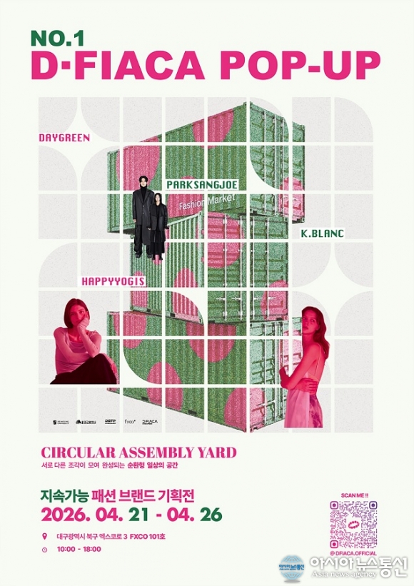 '지속가능한 패션 팝업스토어' 포스터.(자료제공=대구시청) [아시아뉴스통신=윤석원 기자] 대구광역시는 '제23회 국제그린에너지엑스포(4월22~24일)' 개최에 맞춰 엑스코 전시와 연계한 펙스코(FXCO) 활성화의 일환으로 '지속가능한 패션 팝업스토어' 행사를 운영한다. 이번 행사는 지난달 열린 '지역 패션봉제산업 활성화 간담회'에서 제기된 "매년 100만명 이상의 방문객이 찾는 엑스코 전시와의 연계가 펙스코 활성화의 핵심"이라는 현장 의견을 적극 반영해 기획됐다. 엑스코 인근에 위치한 펙스코의 지리적 이점을 살려 전시 관람객을 유입하고, 이를 지역 패션산업으로 연결하겠다는 취지다. 행사는 대구시와 계명대학교 RISE사업단(패션마케팅학과), 대구경북패션사업협동조합, 대구테크노파크 등 산·학·연이 함께 참여해 풍성하게 구성한다. 주요 프로그램으로는 ▲친환경 소재 기반의 데이그린, 해피요기즈 등 지역 디자이너가 참여하는 '지속가능 패션브랜드 기획전' ▲대학생과 신진 작가들이 폐청바지를 활용해 소품으로 재창작한 '크리에이터 업사이클링 제품·디자인 전시' 등이 마련된다. 아울러 펙스코 몰 광장에 설치된 그린라운지에서는 엑스포 입장권을 소지한 방문객들에게 커피 등 무료 음료를 제공하는 이벤트도 진행한다. 박기환 대구시 경제국장은 "이번 팝업 행사는 계명대 RISE사업단과 패션마케팅학과를 비롯한 지역 산·학·연의 협력이 있었기에 가능했다"며 "펙스코가 지역 패션창작 및 마케팅 거점으로 거듭날 수 있도록 앞으로 엑스코 전시와의 연계 및 협력을 지속적으로 강화해 나가겠다"고 말했다. seok193@daum.net