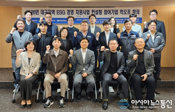 '2026년 대구지역 ESG 경영 지원사업' 컨설팅 참여기업 킥오프 회의를 마친 후 참석자들이 기념촬영을 하고 있다.(사진제공=대구상공회의소) [아시아뉴스통신=윤석원 기자] 대구시와 대구상공회의소는 20일 '2026년 대구지역 ESG 경영 지원사업' 컨설팅 참여기업들과 함께 킥오프 회의를 개최했다. 이번 회의는 사업의 추진 방향을 공유하고 기업과 관계기관 간 협력을 강화하기 위해 마련됐다. ESG 경영은 환경·사회·지배구조를 중심으로 기업의 지속가능성과 사회적 책임을 고려하는 경영 방식으로, 최근 투자자와 소비자의 관심이 높아지면서 기업의 경쟁력 확보와 장기적 성장에 중요한 기준으로 자리 잡고 있다. 이에 대구시와 대구상의는 지역 기업들이 ESG 경영 대응을 지원하기 위해 2022년부터 기업별 맞춤형 컨설팅을 지원하고 있다. 올해는 기업의 ESG 역량에 따라 입문 단계에는 농심태경㈜대구공장 1개사가, 성장 단계에는 ㈜구영테크, 기승공업㈜, 농업회사법인㈜영풍, ㈜동신금속, ㈜류림산업, 삼우이피㈜, ㈜쓰리에이치, 에스엘㈜, ㈜엑스코, 와이제이링크㈜, ㈜티에이치엔, 평화산업㈜ 12개사가 참여해 총 13개사를 지원한다. 회의에 참석한 A사 관계자는 "ESG 경영은 기업의 지속가능한 성장과 경쟁력 강화를 위한 중요한 요소"라며 "이번 컨설팅을 통해 ESG 경영 체계를 구축해 이해관계자들에게 신뢰받는 기업으로 나아가겠다"고 밝혔다. 김병갑 대구상의 사무처장은 "이번 컨설팅이 성공적으로 추진돼 기업의 경쟁력을 강화하고, 지속가능한 미래 대응에 중요한 전환점이 되기를 바란다"며 "앞으로도 대구시와 긴밀한 소통과 협력을 통해 ESG 경영이 지역 기업의 문화로 정착될 수 있도록 최선을 다하겠다"고 말했다. seok193@daum.net