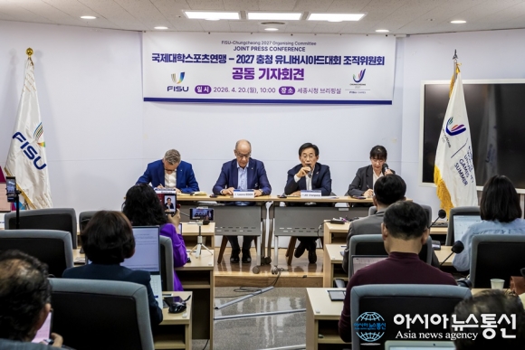 (왼쪽부터) 마티아스 레문트 사무총장, 레온즈 에더 FISU 회장, 조직위 이창 섭부위원장이 기자회견을 하고 있다./사진제공= 2027 충청 유니버시아드대회 조직위원회 [아시아뉴스통신=박희석 기자] 2027 충청 유니버시아드대회 조직위원회(위원장 강창희, 이하 조직위)는 국제대학스포츠연맹(FISU) 회장단 방한을 계기로 20일 세종시청 브리핑실에서 공동 기자회견을 개최했다고 밝혔다. 이번 기자회견은 대회 준비 추진 현황을 국내외 언론에 공유하고, 국제 스포츠 이벤트로서 대회의 신뢰도와 기대감을 높이기 위해 마련됐다. 이날 행사에는 FISU 레온즈 에더(Leonz Eder) 회장를 비롯해 마티아스 레문트(Matthias Remund) 사무총장 등 FISU 회장단과 이창섭 부위원장을 비롯한 조직위 주요 인사들이 참석했다. 기자회견은 FISU 회장단의 모두발언을 시작으로, 참석한 언론인들과의 질의응답 순으로 진행됐다. 이 자리에서 조직위와 FISU는 대회의 성공적인 개최를 위한 긴밀한 협력 체계를 확인하고, 향후 준비 방향에 대해 심도 있는 소통의 시간을 가졌다. 조직위는 이번 기자회견을 통해 국제기구와의 긴밀한 협력 체계를 대외적으로 알리고, 대회의 성공 개최 기반을 더욱 공고히 한다는 방침이다. 이창섭 부위원장은 “그동안 FISU와 긴밀히 소통하며 대회를 준비해 온 만큼, 국제기구에서도 우리의 노력을 긍정적으로 바라보고 있다”며, “앞으로도 FISU와 협력을 강화해 세계 대학생들에게 좋은 기억으로 남는 대회를 만들겠다”고 밝혔다. 한편, 2027 충청 유니버시아드대회는 2027년 8월 1일부터 12일까지 대전·세종·충북·충남 등 충청권 4개 시·도에서 개최되는 국제 대학 스포츠 종합대회로, 전 세계 150여 개국 1만 5000여명이 참가할 예정이다. news26@hanmail.net
