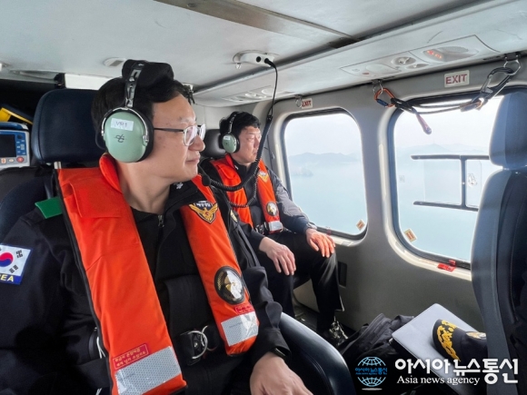 접경해역 해상순찰을 진행 중인 중부해경청장./사진제공=중부해경청 [아시아뉴스통신=조은애 기자] 중부지방해양경찰청장(치안감 박재화)이 지난 4월 14일부터 15일까지 서해 접경해역인 백령도와 대청도를 방문해 치안 현장 점검을 실시했다고 21일 밝혔다. 이번 점검은 해양안보 상황을 점검하고 현장 대응력을 강화하기 위해 추진됐다. 박 청장은 백령파출소 및 대청파출소를 방문해 현장 건의사항과 주요 현안을 청취했다. 이어 두무진포구 등 취약개소를 점검하며 안전관리 실태를 확인했다. 해군기지를 찾아 불법외국어선 대응과 대북 안보 상황도 점검했다. 박재화 중부지방해양경찰청장은 “접경해역은 해양안보의 핵심 지역인 만큼 철저한 대비가 필요하다”며 “현장 중심 점검을 통해 국민이 안심할 수 있는 해양 치안을 확립해 나가겠다”고 말했다.