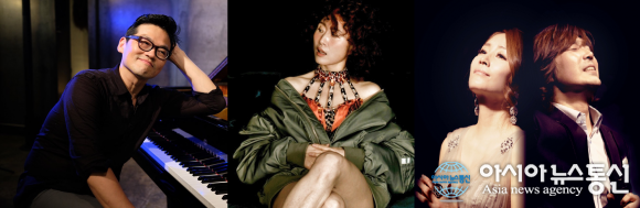 | 9월 2일 파크콘서트 출연진. 사진 왼쪽부터 조윤성, 앵구 송, 휴(HUE).(사진=김해국제음악제 조직위원회 제공) |