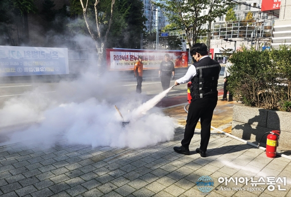 [아시아뉴스통신=양행복 기자] 온누리병원(병원장 조영도)에서는 유사시 직원들의 병원내 화재발생시 대응능력을 강화하기 위해 10월 24일(목) 오후 2시 약 50여 명의 직원이 참여하는 가운데 왕길119안전센터와 함께 ‘2024년도 합동소방훈련’을 실시하였다.