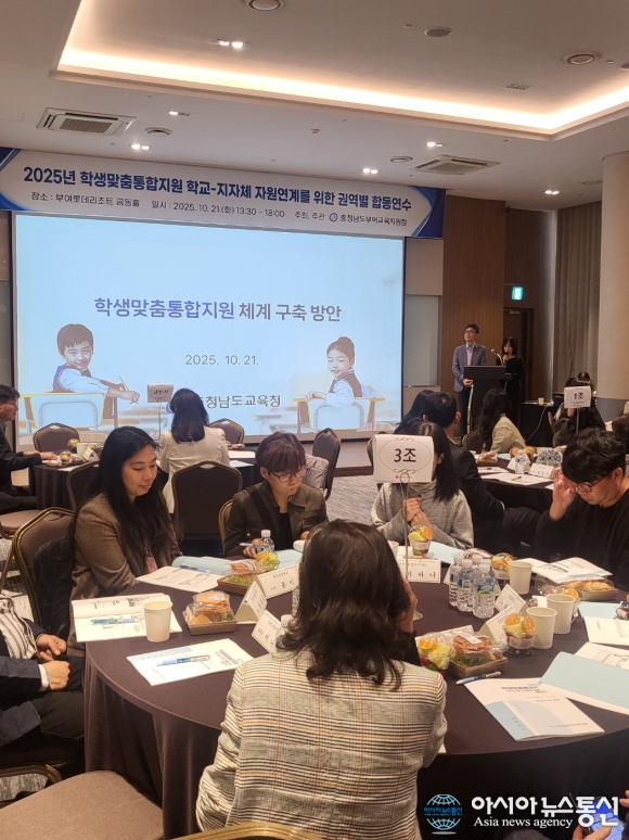 [아시아뉴스통신=이준상 기자] 부여교육지원청 교육장 황석연은 10월 21일 롯데리조트부여에서 부여 관내 초·중·고교 37교 교장 및 담당자와 부여군 16개 읍·면 행정복지센터 면장 및 담당자 100여 명이 참석한 가운데 2025년 학생맞춤통합지원 지역사회 자원연계를 위한 합동연수를 실시했다