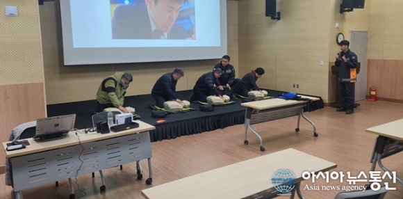 교육 내용은 ▲화재예방 및 소화 기·소화전 사용법 ▲완강기 사용법 ▲심폐소생술(CPR) 및 기도 폐쇄 응급처치법 등으로 구성됐다.