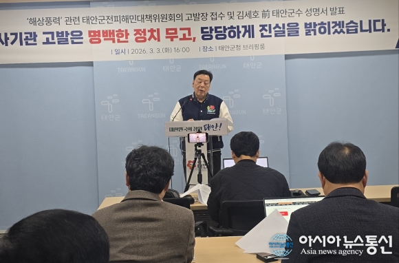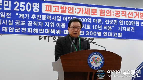 아시아뉴스통신=장선화 기자]충남 태안군 가세로 군수는 3일 군청 브리핑룸에서 기자회견을 열고 해상풍력 사업과 관련한 태안군 전 피해민대책위원회의 고발장 접수 및 김세호 전 태안군수의 성명서 발표에 대해 “명백한 정치적 무고”라고 반박했다.