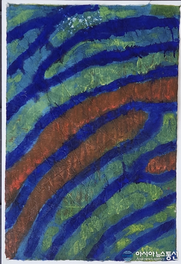이전 작업이 한지를 활용한 입체적 구성에 무게를 두었다면, 이번 전시에서는 보다 드로잉적인 성격이 강조된 평면 작업으로 시선이 옮겨간다. 다양한 컬러가 화면 위에서 보다 직접적으로 작동하며, 선과 면, 형상과 확장의 관계가 한층 선명하게 드러난다. 블루, 레드, 옐로우를 비롯한 다채로운 색채는 독특한 형상과 결합하며, 작가 특유의 조형 언어를 보다 경쾌하고 밀도 있게 펼쳐낸다.