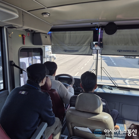 | 마을버스 운전자 취업지원사업 참여자가 주행 실습을 하고 있다./사진제공=구로구청 |